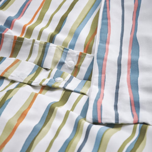 This duvet cover set with irregular stripes adds colour to your bedroom. Designed by Johanna Skånmyr and woven from a polyester/viscose blend that is wrinkle-resistant and has a fine sheen.