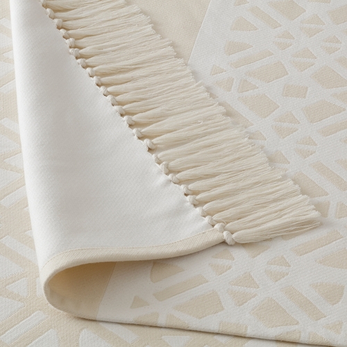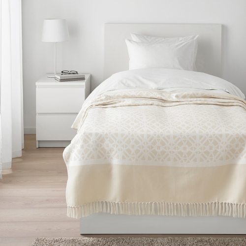 This beige and white throw has a subtle mosaic pattern and long playful fringes. Woven from wonderfully soft and warming cotton – and easy to match with other textiles in the GOKVÄLLÅ collection.