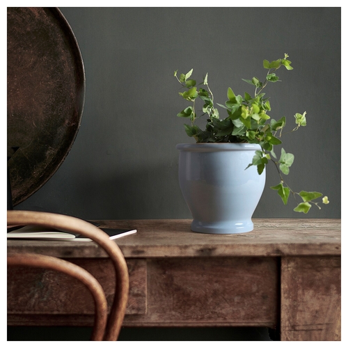 With its traditional shape, TRUMPETBUSKE plant pot offers country charm and spreads a calm feeling in the room with its soft blue colour that lets your flowers and green plants play the starring role.