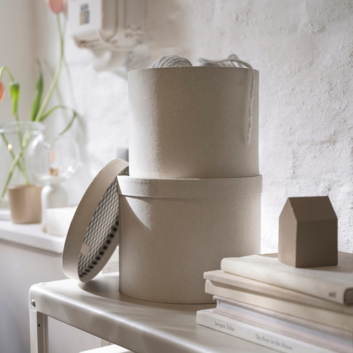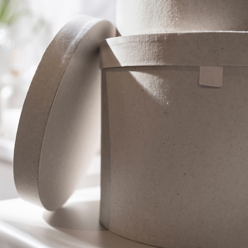 A set of 2 sturdy storage boxes made of recycled paperboard with a rice paper finish. So decorative that you’ll happily keep the boxes out in the open – for example in the bedroom, living room or hallway.