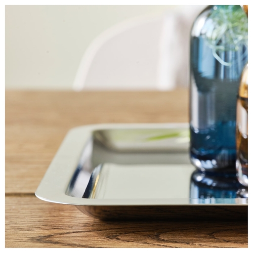 On this tray you can place things you like to serve, display or collect. The high edge keeps everything in place and the shiny surface creates decorative reflections of the objects. Part of the DAKSJUS collection.