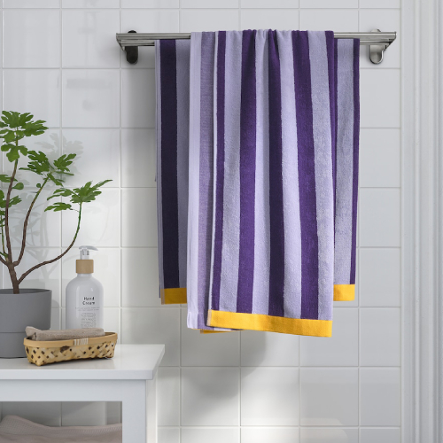 This absorbent cotton/viscose blend towel with bold purple stripes adds vitality to your bathroom and is a great beach companion. Matches VÅGSJÖN towel in golden-yellow and SNÖJONKVILL shower curtain.