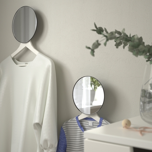 PLOMBO mirrors have a spacing on the back that creates a hanging function, perfect with BUMERANG hanger. Suitable throughout the home where you want your clothes close at hand after using the mirror.