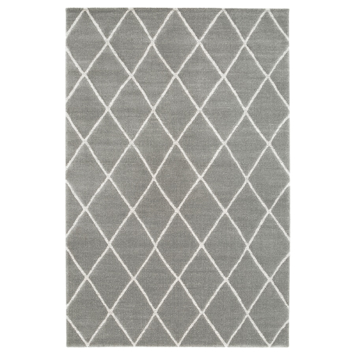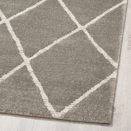 فرش پرز کوتاه طرح لوزی سفید/خاکستری