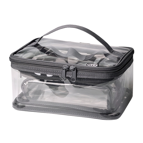 Organise make-up, shampoo, razors and other big and small items that you need on trips in these 4 toiletry bags. They’re lightweight, easy to clean – and transparent, so you can quickly find what you need.