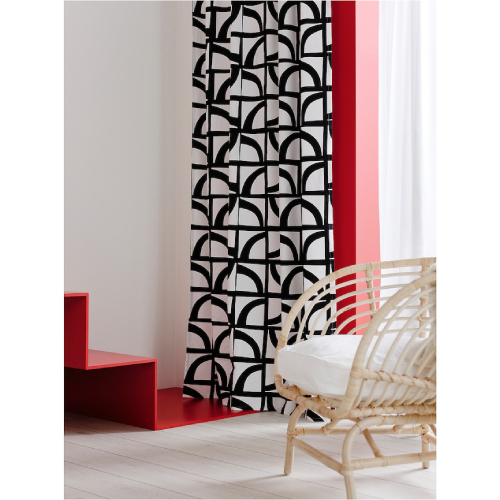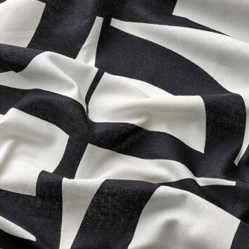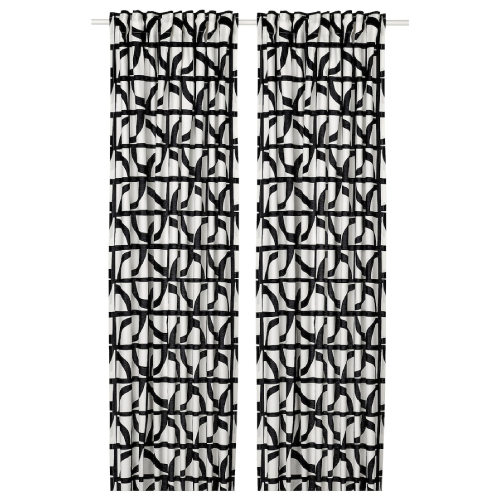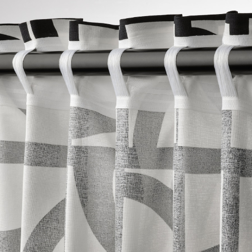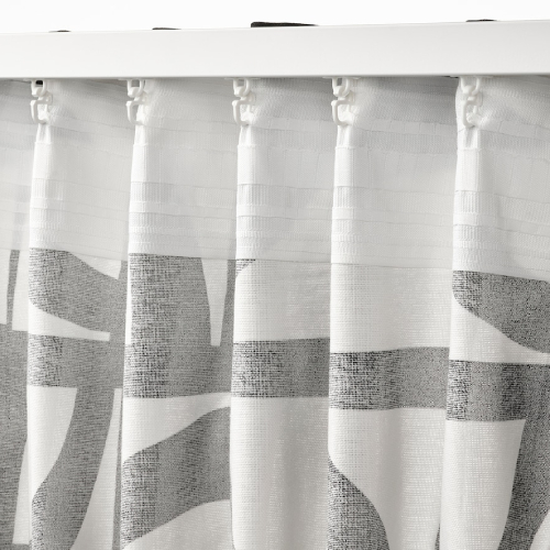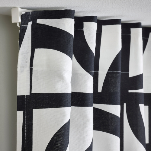 Like a pile of cut out paper pieces, the lively pattern dances with the light and keeps its movement in the pleating. VINTEROXBÄR curtain is beautiful on its own or layered with block-out curtains.